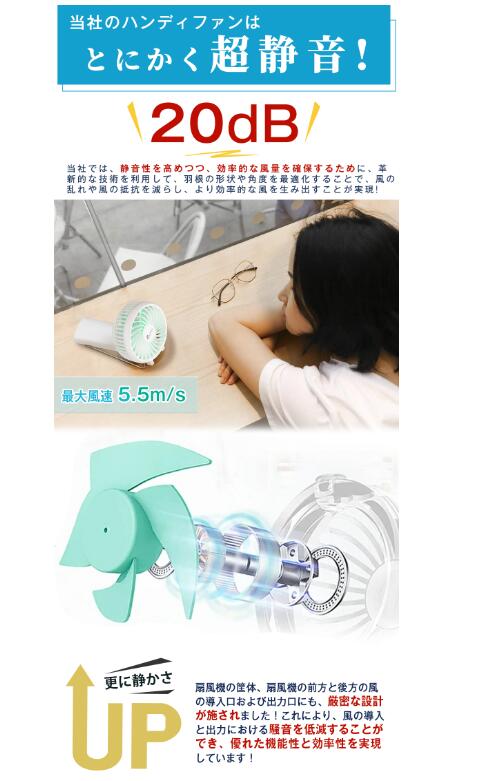 2024最新版/ ハンディファン 扇風機 携帯扇風機 20dB超静音 dcモーター 5200mAhバッテリー内臓 扇風機
