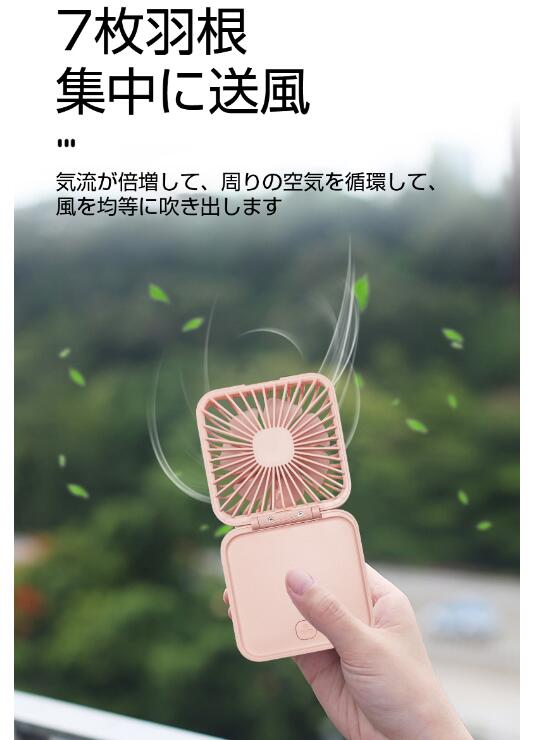 ハンディファン USB扇風機 強力 USB 卓上 節電 扇風機 LEDライト付き 手持ち かわいい 静音 卓上型