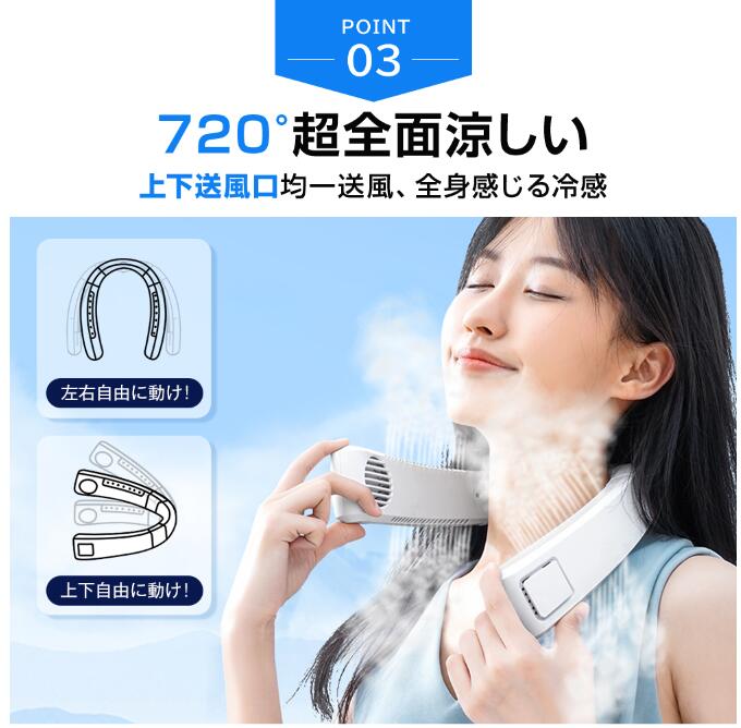 首掛け扇風機 くるくるネックファン ネックファン 軽量 コンパクト 羽根なし 静音 ハンズフリー おしゃれ