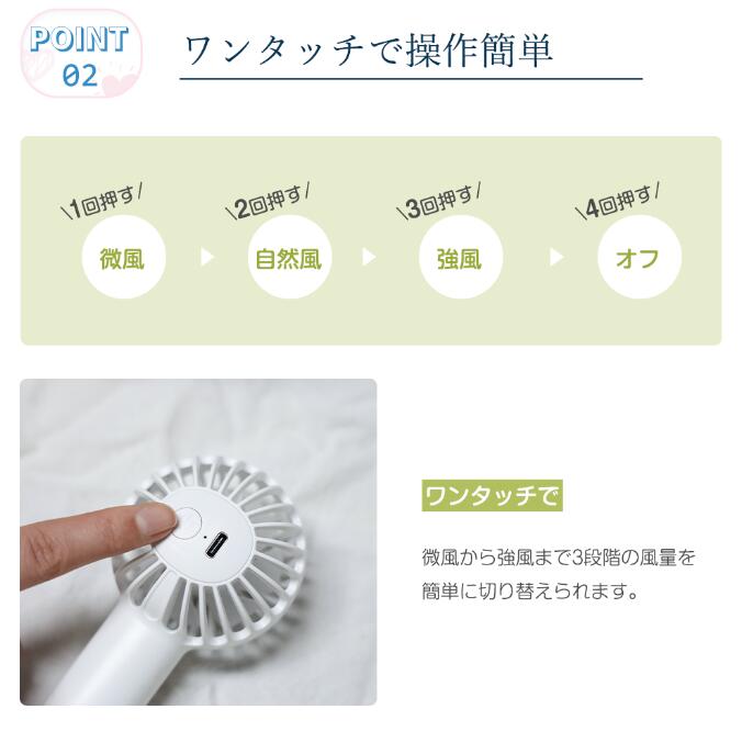 携帯扇風機 手持ち扇風機 ミニ扇風機 3段階風量 冷却モード 小型扇風機 静音 充電式コードレス