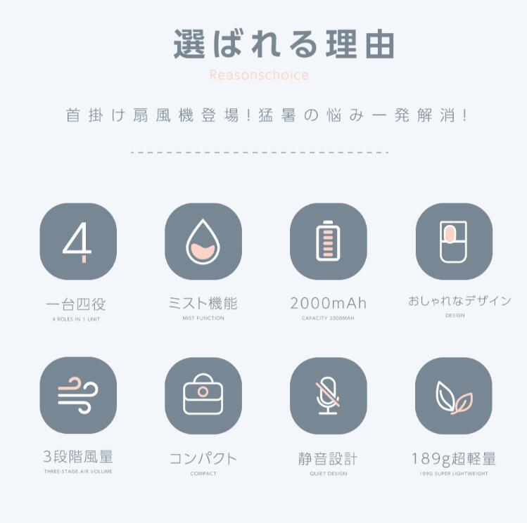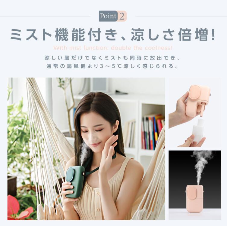 腰掛け扇風機 ファン ミスト機能 加湿機能 首かけ ネックファン 腰掛 腰かけ 手持ち 卓上携帯扇風機