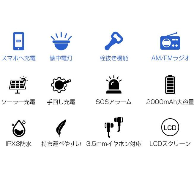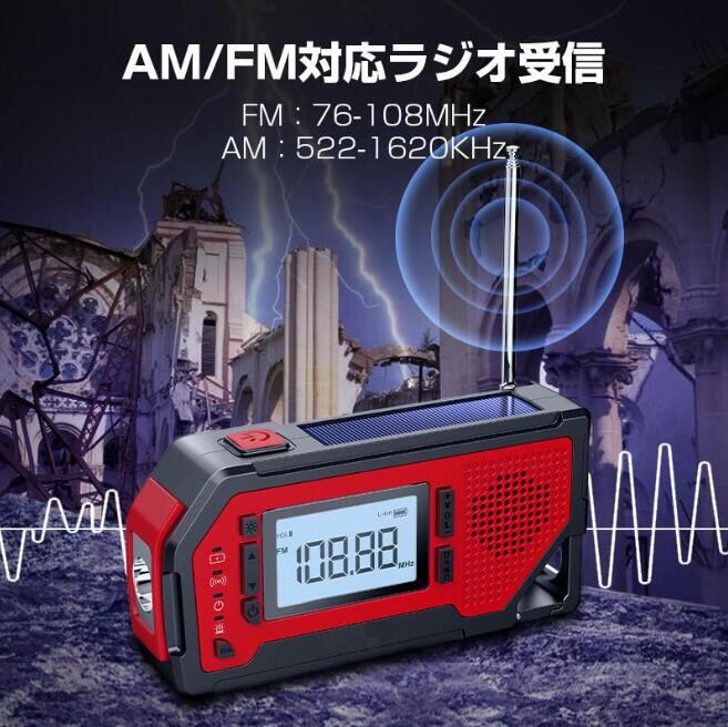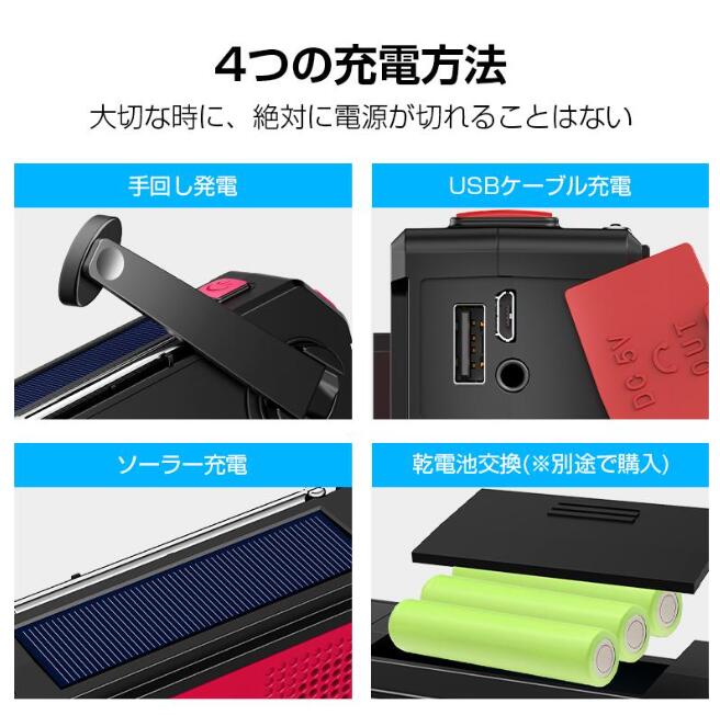 多機能防災ラジオ 防災グッズ ポータブルラジオ 防災グッズ AM/FMラジオ ワイドFM対応 携帯ラジオ 懐中電灯