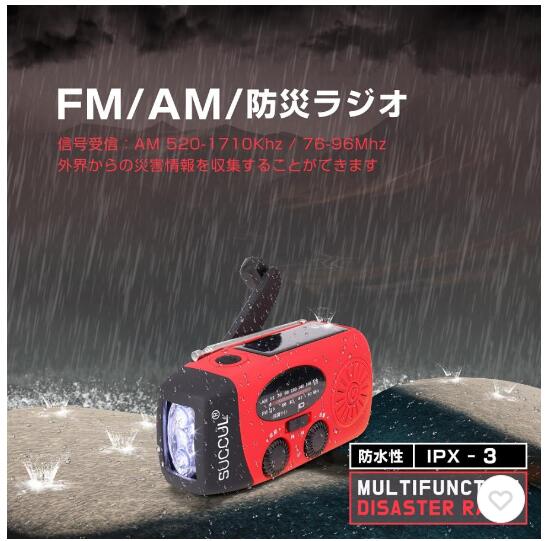 多機能防災ラジオ 大容量2000mAh 防災懐中電灯 3つ充電方式 AM/FM対応 スマホ充電 防災 キャンプ 緊急対策