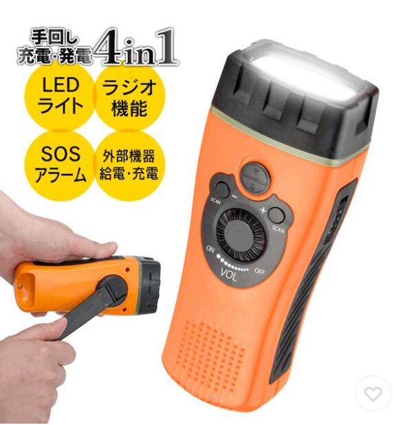多機能防災ラジオ 手回し充電 小型 ラジオ FM対応 ポータブルラジオ 4in1 携帯 ダイナモラジオ