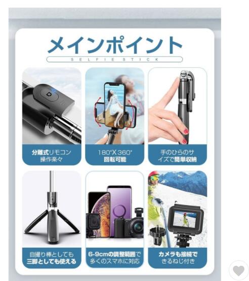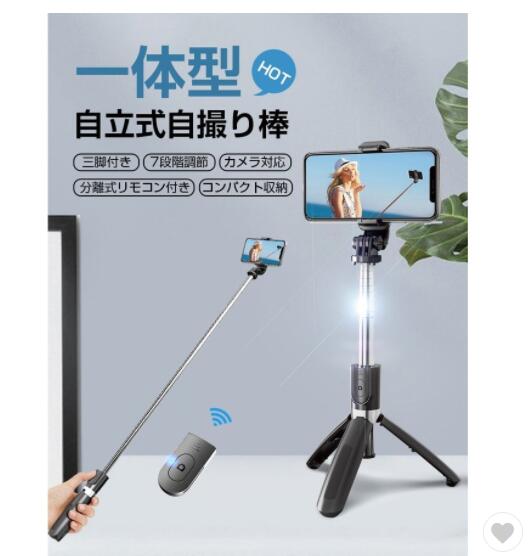 自撮り棒 三脚付き セルカ棒 Bluetooth リモコン付き スマホ 自撮り 三脚スタンド 伸縮調節 360度回転