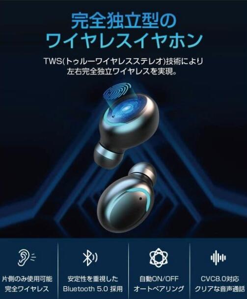ワイヤレスイヤホン Bluetooth5.0 コンパクト 高音質 防水 スポーツ iPhone Android ブルートゥース