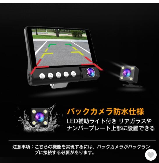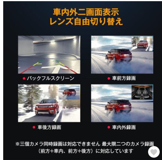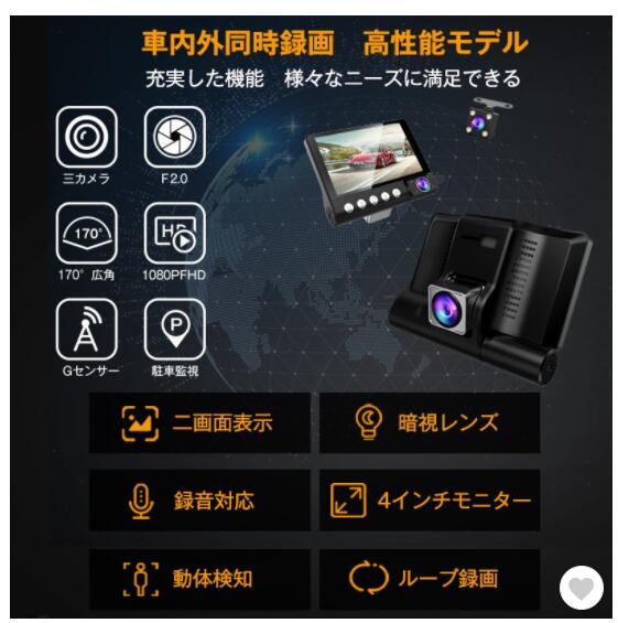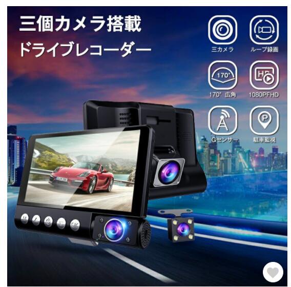 ドライブレコーダー 3カメラ ドライブレコーダー前後 車載カメラ 車内/車外同時録画 1080P 駐車監視