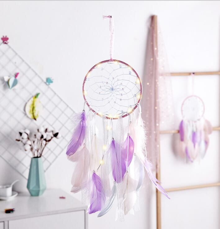 タペストリー 壁掛け ドリームキャッチャー 羽 玄関 インテリア飾り LEDランタン ウォールデコレーション