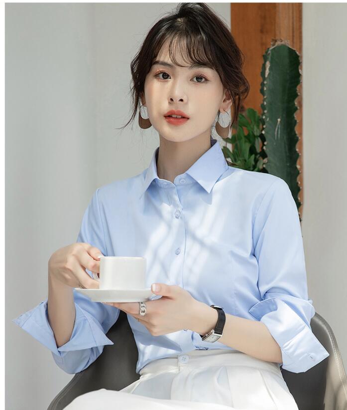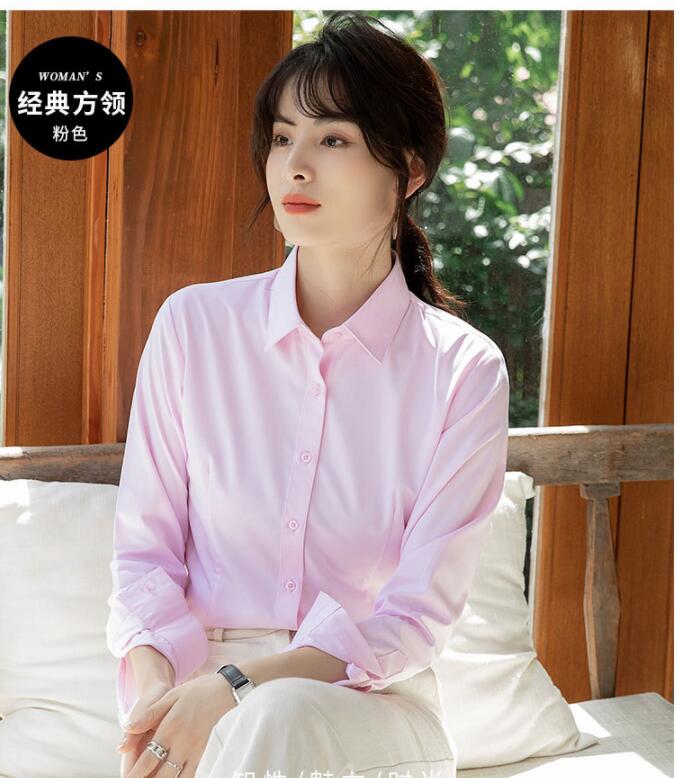 ワイシャツ ブラウス オフィス フォーマル 開襟 白 長袖 レディース 制服 シャツ スリム 事務服