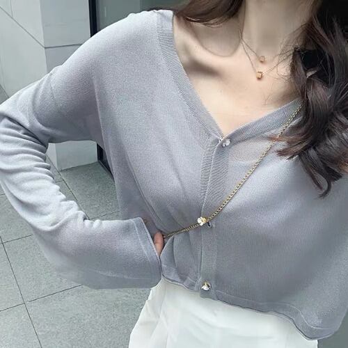 韓国ファッション 2021年春夏新作 トップス 日焼け防止服 セクシーカーディガン ブラウス
