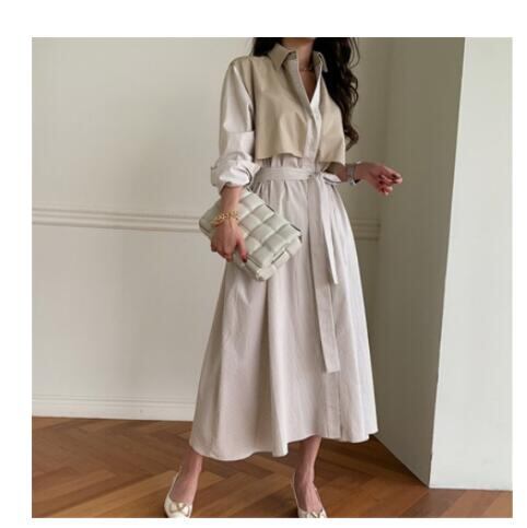 韓国ファッション 2021年春夏新作 人気 フェイクレイヤードワンピース