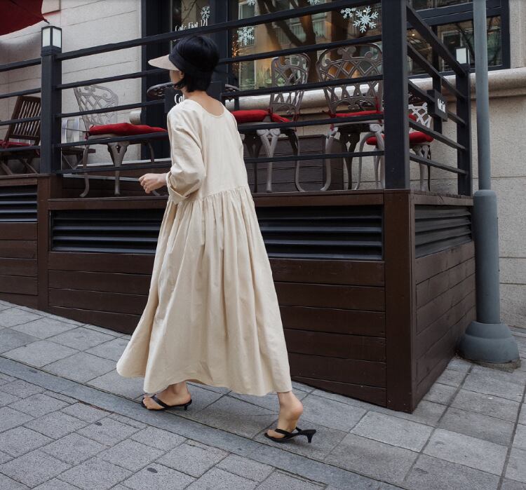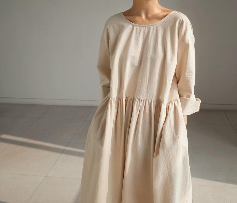 韓国ファッション 2021年春夏新作体型カバーロング丈ワンピース 長袖 着回しやすい シンプル