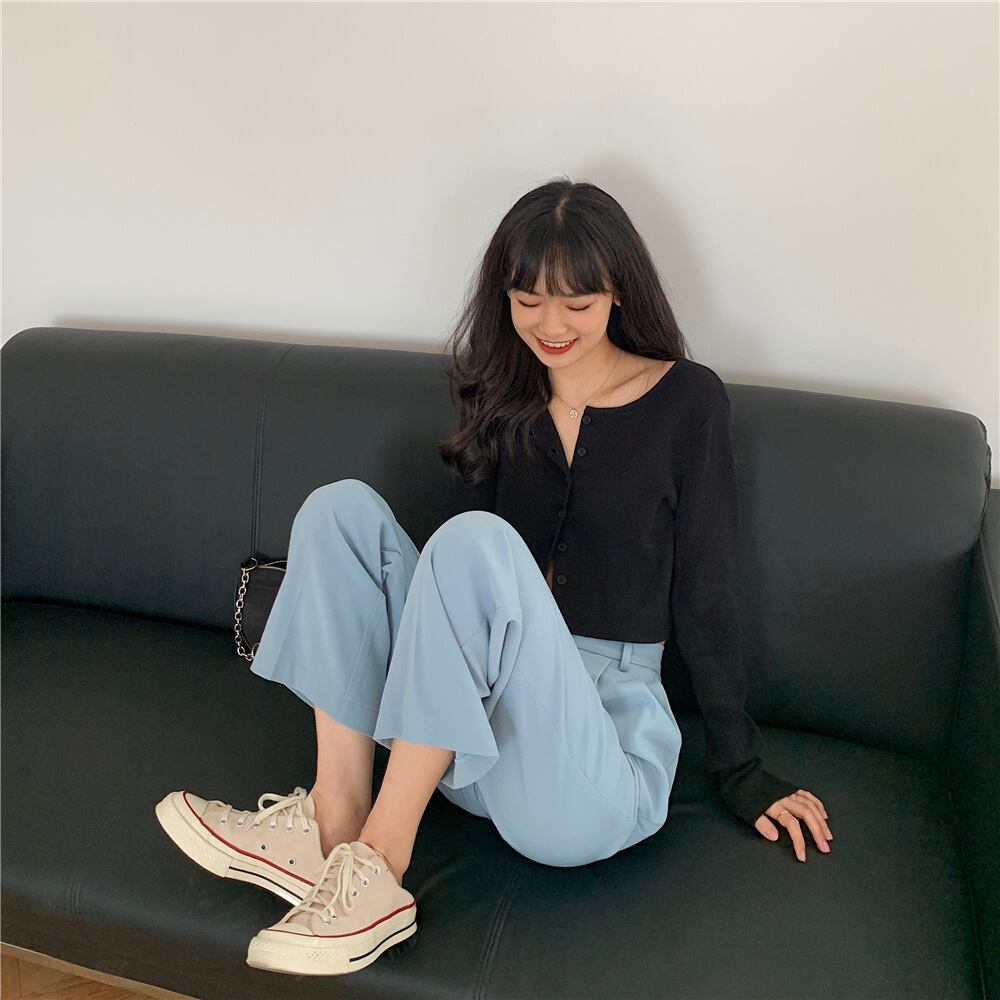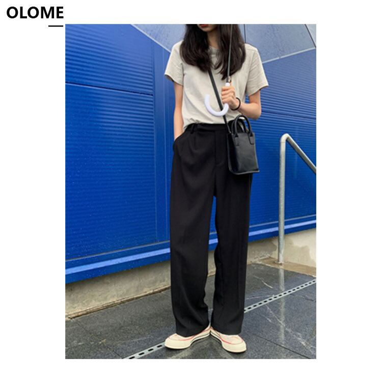 韓国ファッション 2021年春夏新作ワイドパンツ ストレートパンツ OL通勤 ゆったり