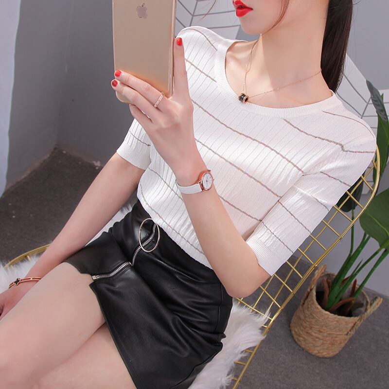 リブニット レディース ニット トップス ボートネック 半袖 レーヨンナイロン もっちり オフィスカジュアル