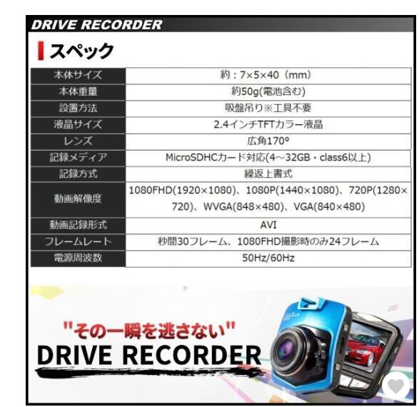 ドライブレコーダー 1080P 2.5インチ 300万画素 フルHD 広角 駐車監視 暗視機能 小型 防犯