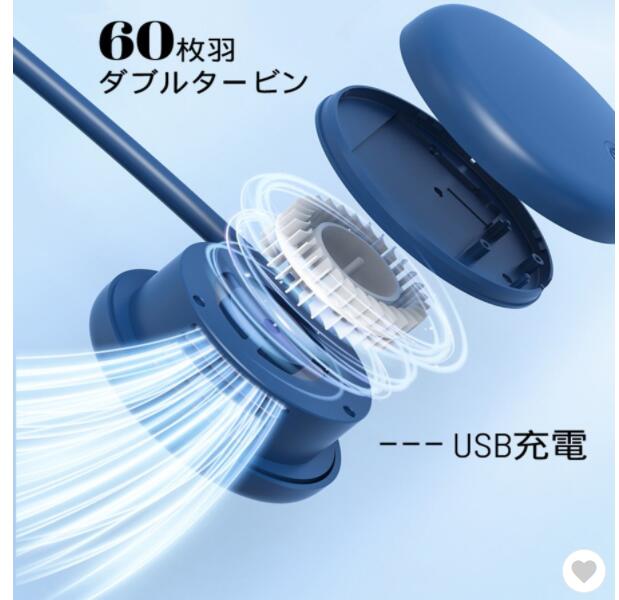 首掛けクーラー ハンディ 首掛け扇風機 携帯冷風機 3段階 ミニファン USB充電 熱中症対策