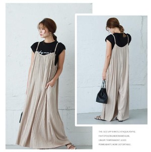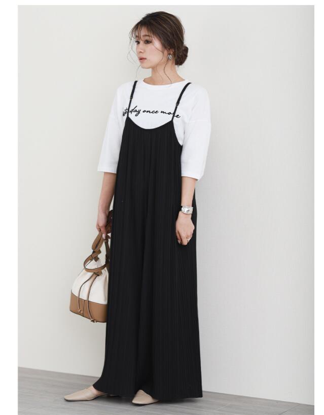 サロペット 秋服 ワンピース ワイドパンツ ゆったり 長ズボン 通勤
