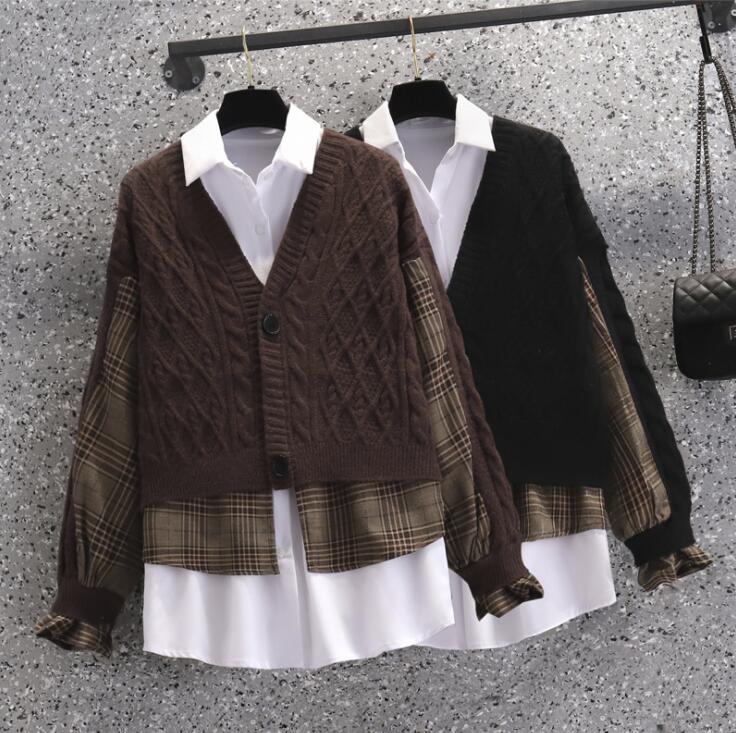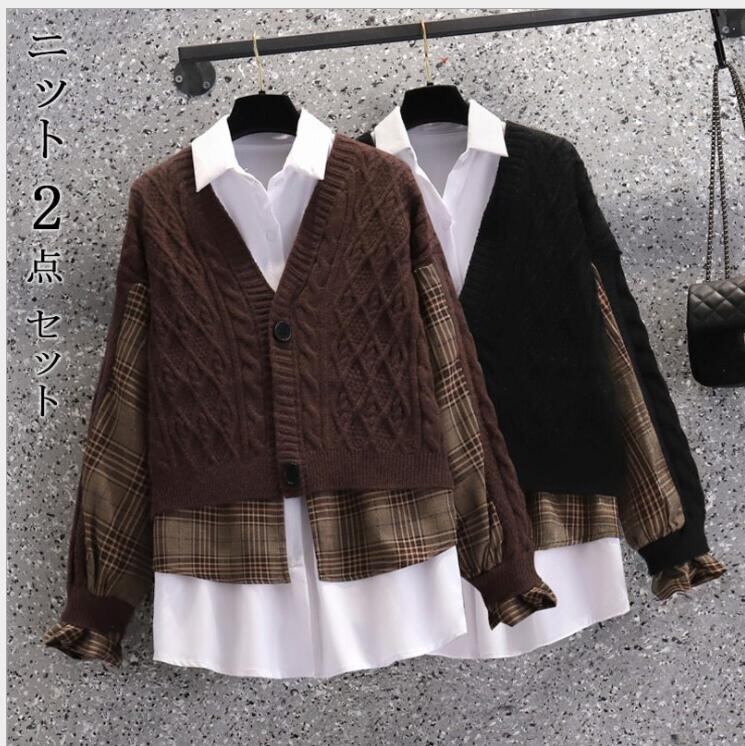 秋冬新作 ニットセット レディース セーター+シャツ ニット トップス 2点セット