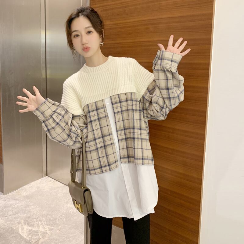 秋冬新作 ニットセーター レディースブラウン セーター ニット切り替え トップス
