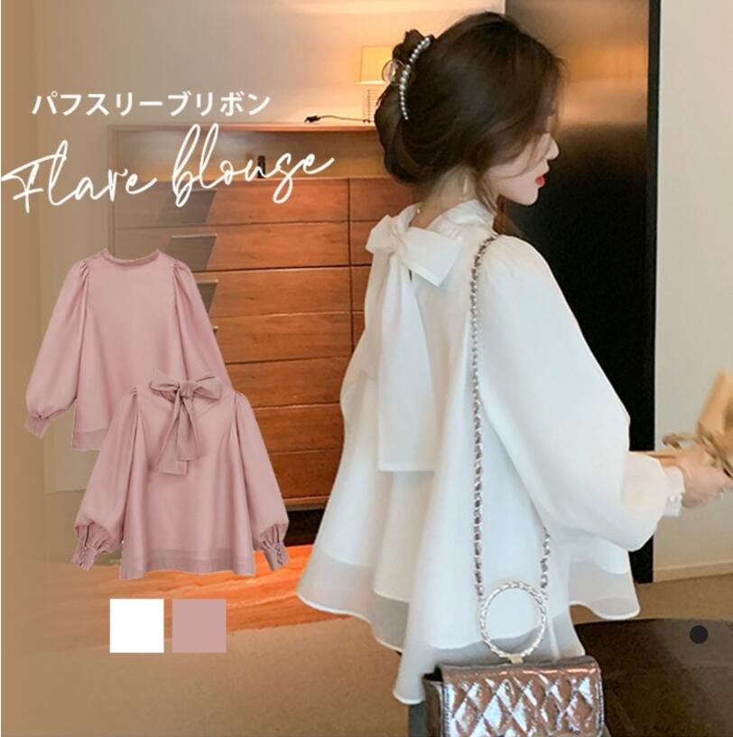 春季新作 レディース トップスシャツ ゆったり 韓国風パリスリーブリボン