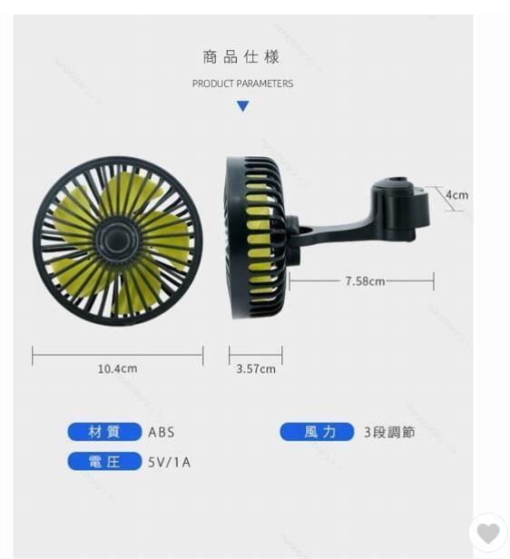 車用扇風機 車内扇風機 ファン 簡単取り付け 12V/24V通用 USBタイプ 三階段風量調節 アロマ機能