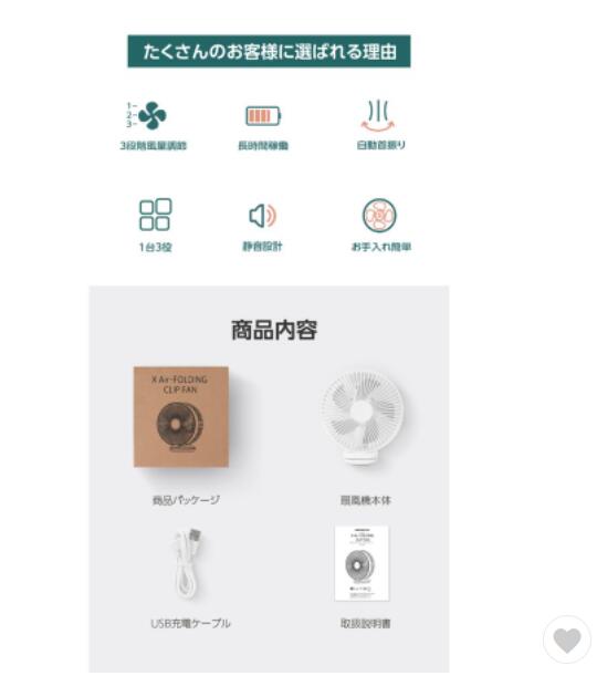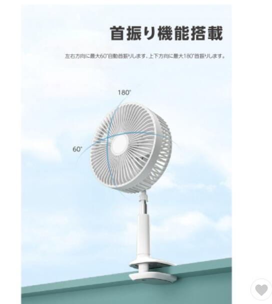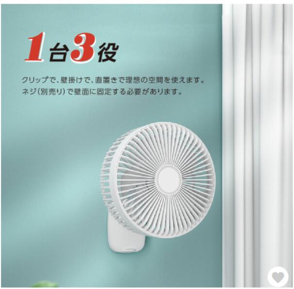 扇風機 卓上 クリップ式 壁掛け式 大容量 バッテリー搭載 usb 充電式 スタンド 自動首振り 小型