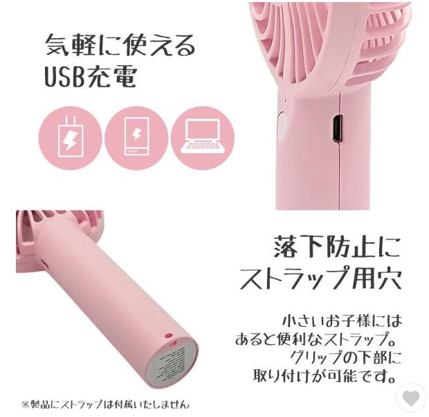 ハンディファン 手持ち扇風機 光る ストラップ 取付可 USB 充電式 携帯扇風機 ハンディ ライト