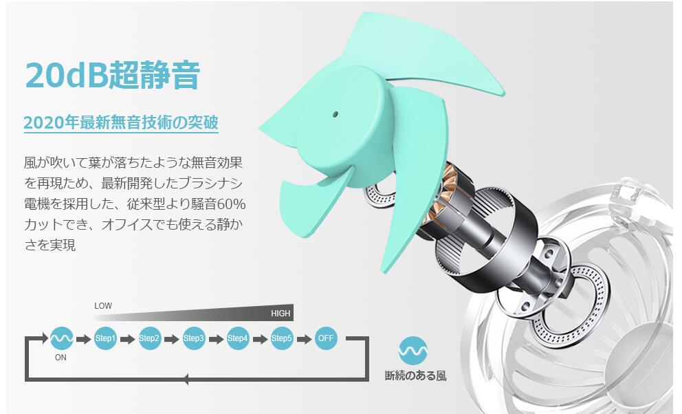 携帯扇風機 20dB超静音 dcモーター バッテリー内臓 扇風機 卓上扇風機 usb 扇風機 熱中症対策