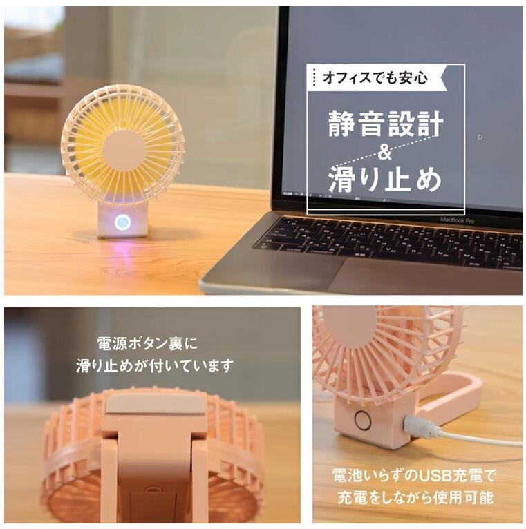 ハンディファン 小型 扇風機 手持ち 自立 2WAY USB 充電式 ポータブル ファン 小型 卓上 携帯扇風機