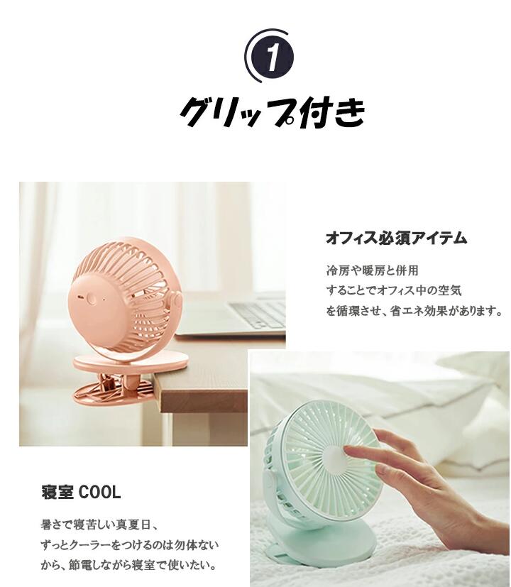 卓上 扇風機 クリップ タイプ 強風 おしゃれ USB 扇風機 ボタン 3段階風量調節 熱中症対策