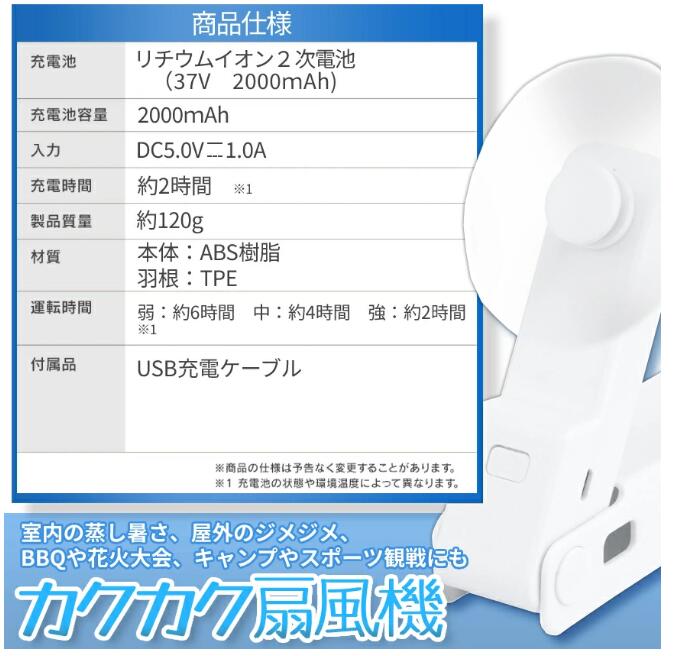 扇風機 手持ち カクカクFAN USB充電式 持ち歩き便利 携帯扇風機 ファン 大容量 ファン