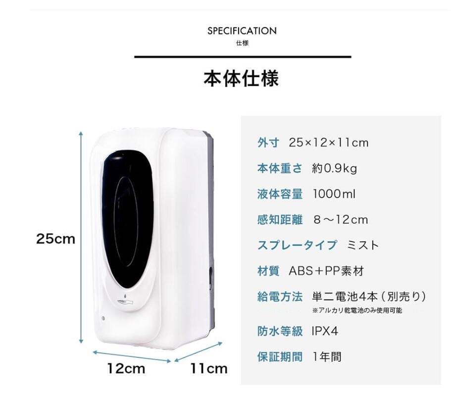 ディスペンサー アルコール 消毒 非接触 電池式 壁掛け 感染症対策商業施設 オフィス 大容量