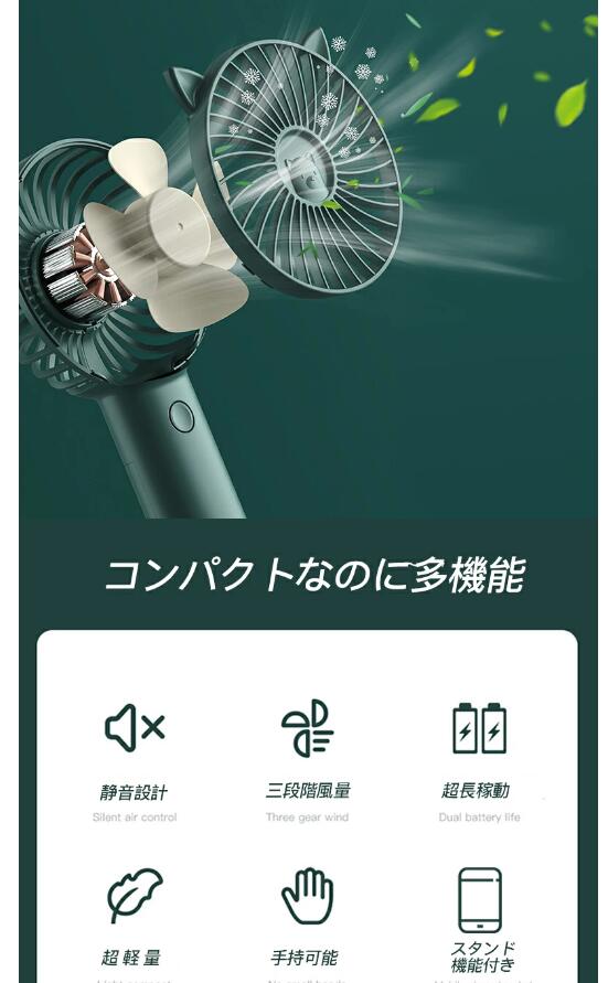 ネコミミハンディファン ハンディ扇風機手持ち扇風機 ポータブル 扇風機 持ち運びやすい