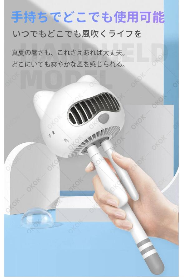 ベビーカー 扇風機 4way対応 羽根なし 巻き付け 小型 可愛い 猫型 ハンディファン ミニ扇風機