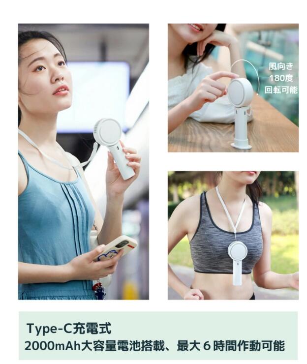 ハンディーファン2000mAh 軽量 ポータブル扇風機 羽なしハンディファン 扇風機 首掛け