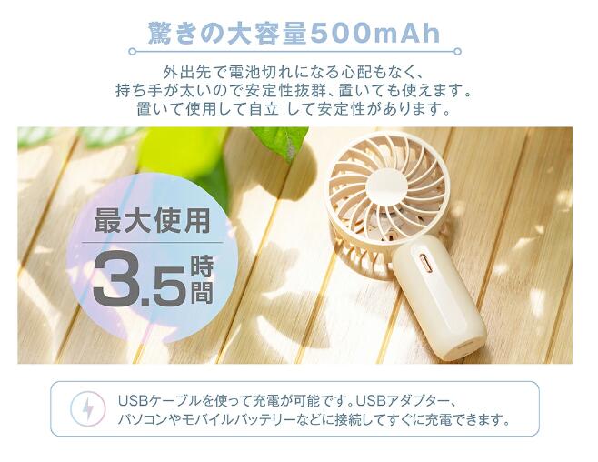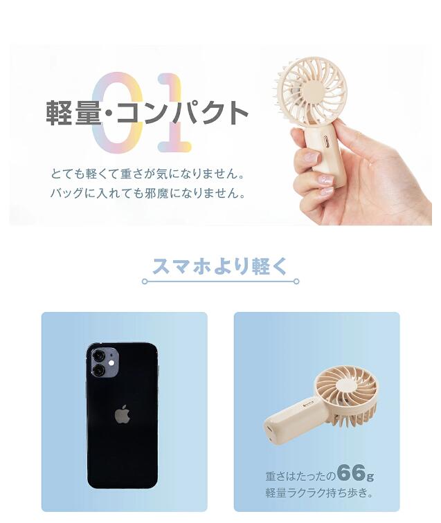 ハンディファン パワフル送風 LEDライト 連続5時間使用可能 手持ち扇風機 携帯扇風機 扇風機 充電式