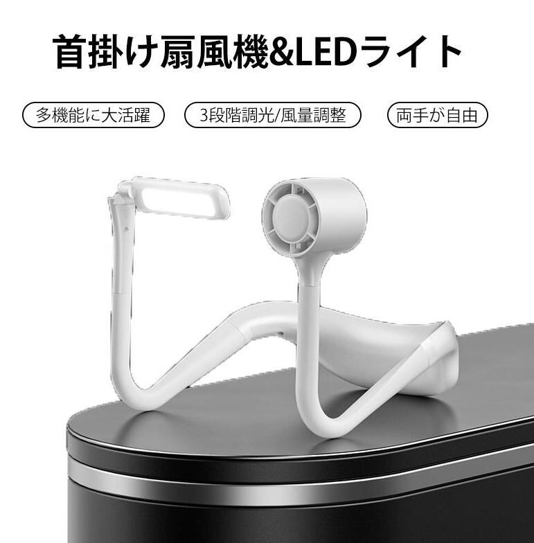 2in1 LEDライト 扇風機 首掛け 携帯扇風機 USB充電式 4000mAh 読書灯 懐中電灯 頚部ライト ハンディファン