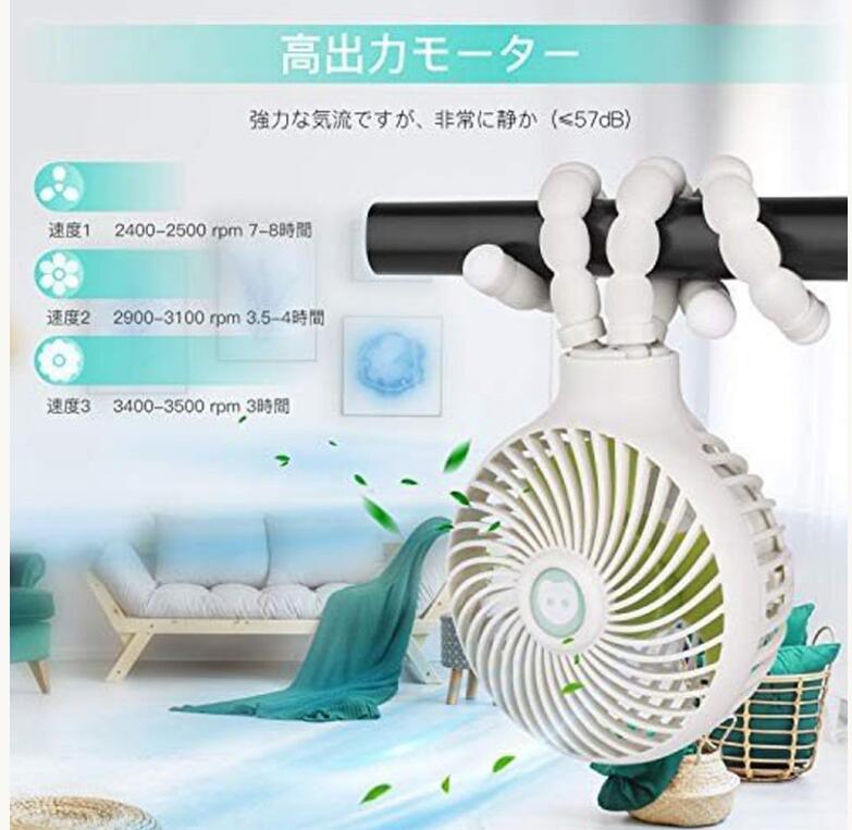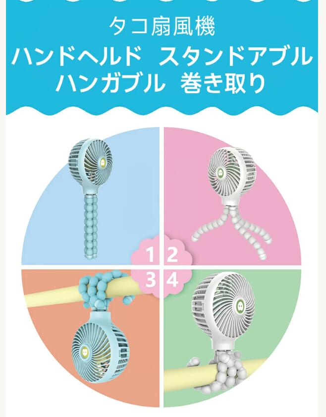 ミニ扇風機 タコ扇風機 静音 USB 卓上 扇風機 三脚 スタンド 2000mAh ファン 巻き付け 携帯扇風機