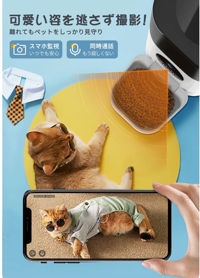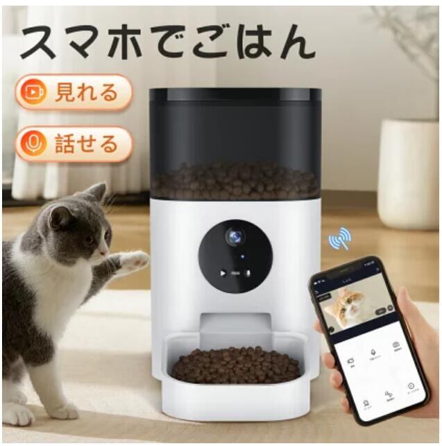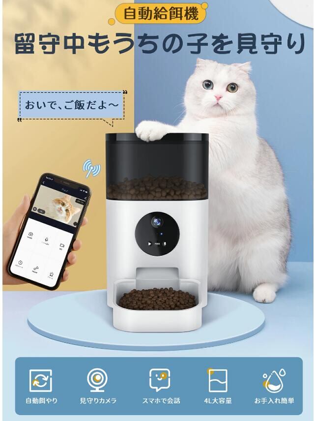 自動給餌器 カメラ付き 猫 犬 給餌器 自動餌やり機 4L大容量 遠隔操作 ペット 留守番 スマホ操作
