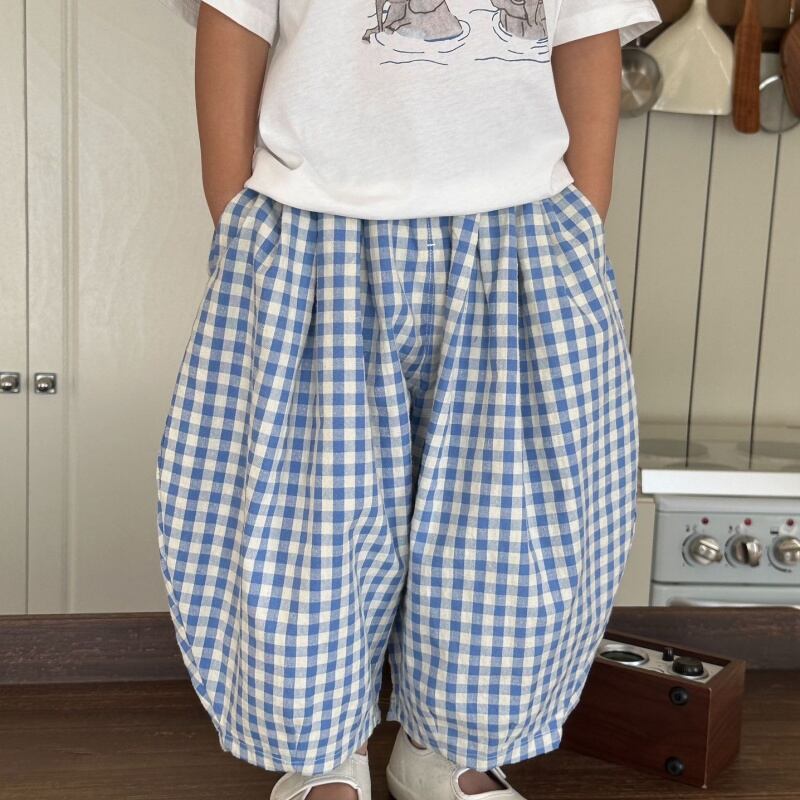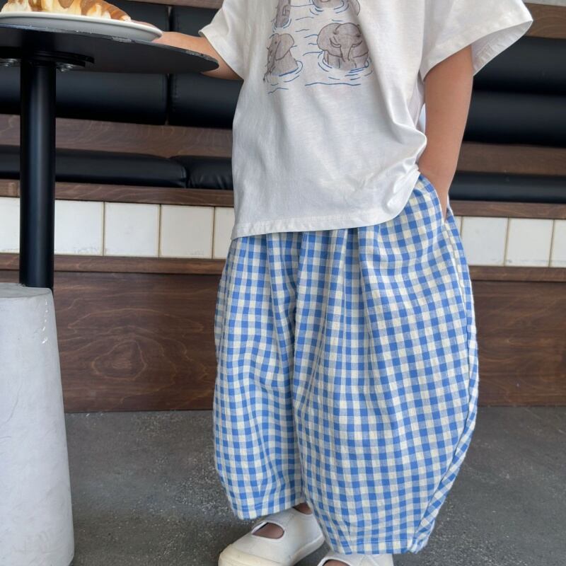【2025夏新作】韓国風 子供 綿100% チェックパンツ ロング ユニセックス夏 通園 おしゃれ