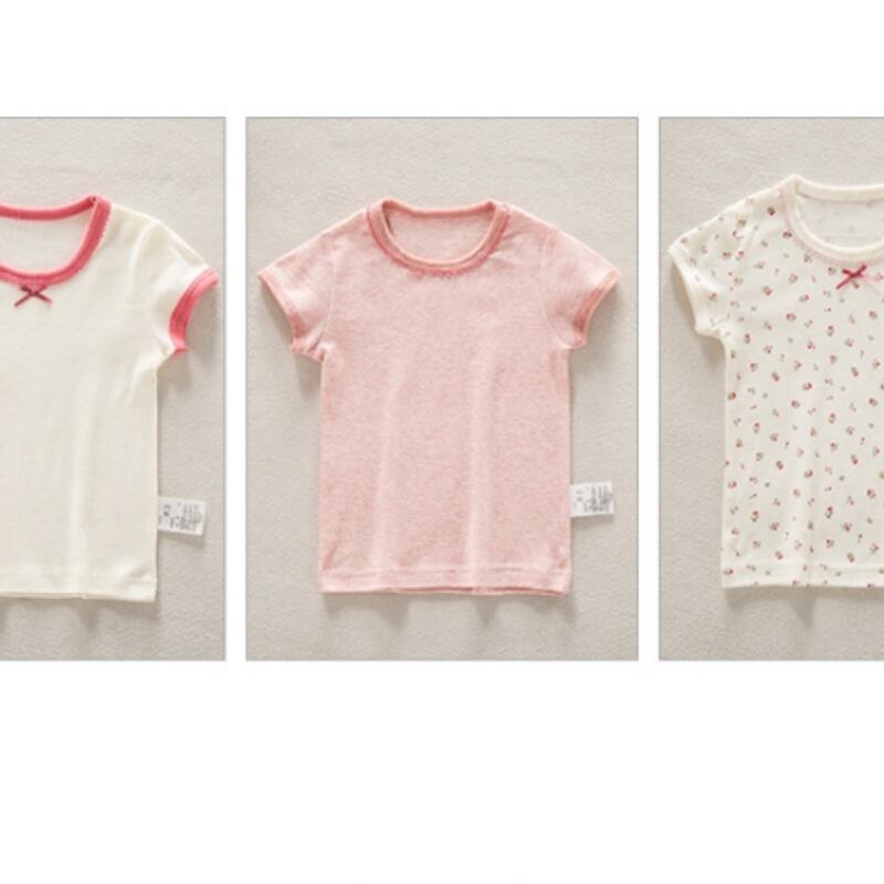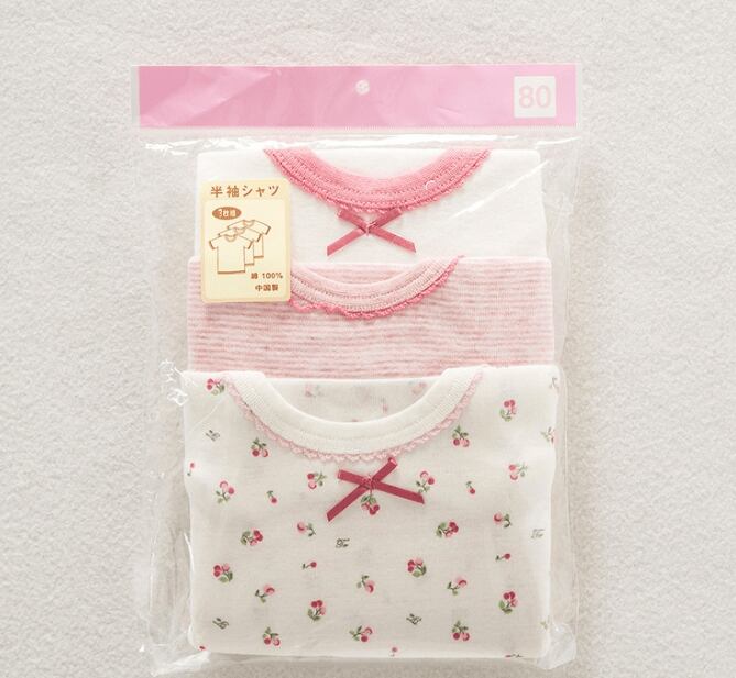 チェリー柄 女の子Tシャツ 3枚セット 100%コットン 通気性抜群 薄手 キッズ肌着 夏用トップス