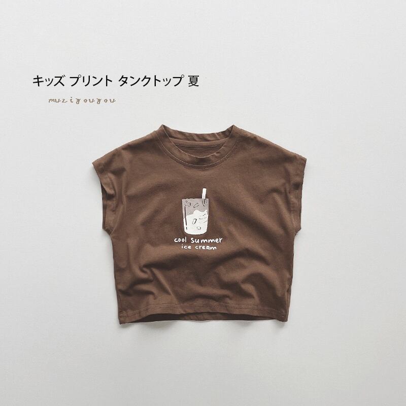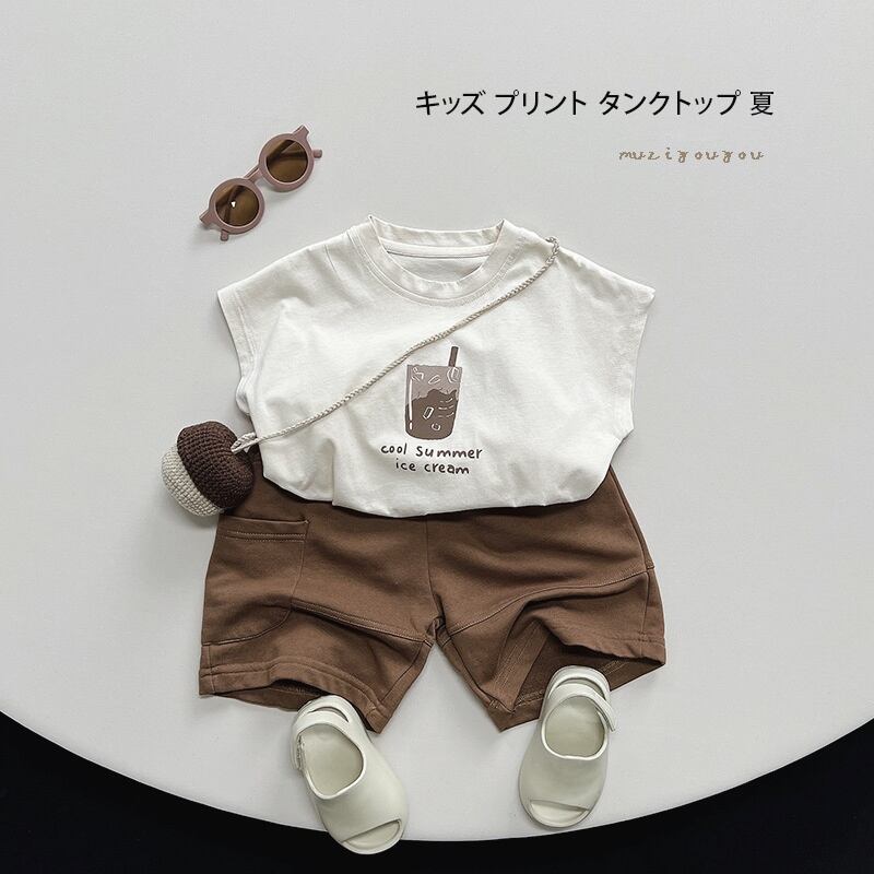 キッズ プリント タンクトップ 夏 男女兼用 ベビー コットン100% ノースリーブ 韓国風 日系 おしゃれ