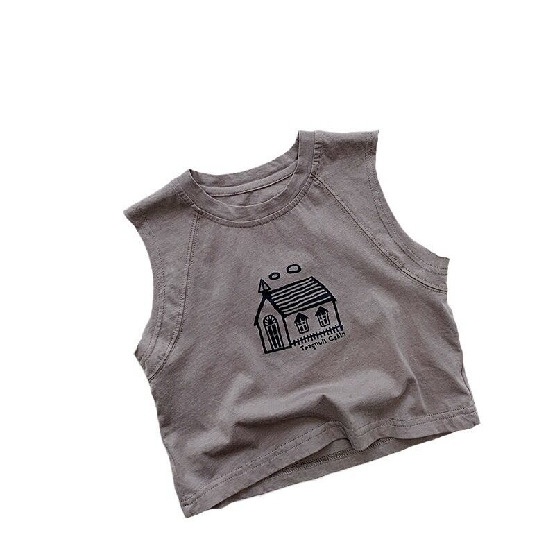 2025夏新作 キッズ タンクトップ 男女兼用 韓国風 森ガール コットン100% 80-130cm グレー/ベージュ