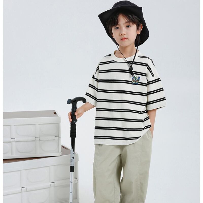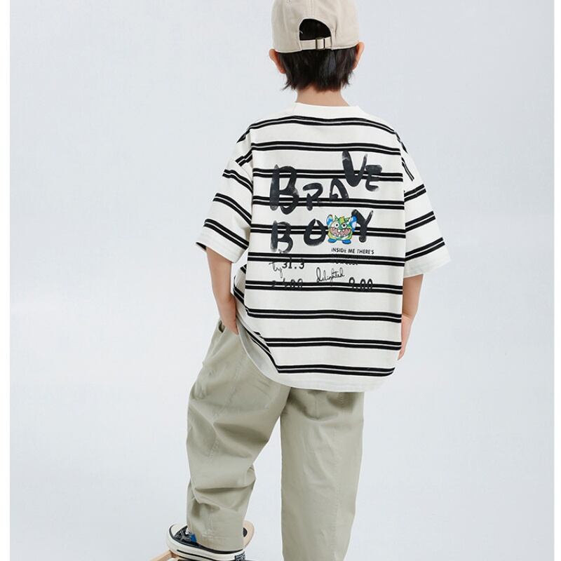 【2025夏新作】男の子 綿100% 半袖Tシャツ ストライプ 韓国風 キッズ 子供服