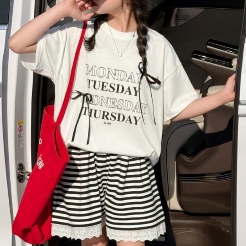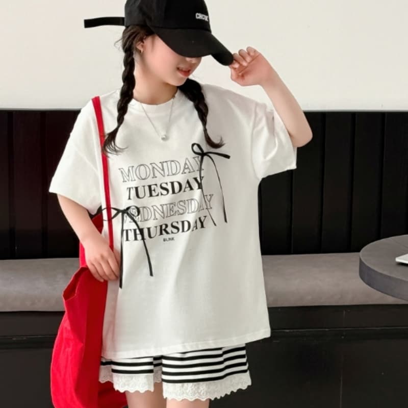 レターボウTシャツ&レースストライプショーツ 2025年夏 新作 女児用サマーセット