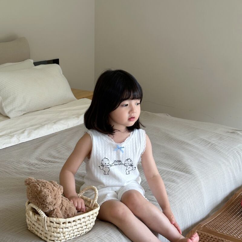 【夏用】女の子 綿100% レース付き キャミソールセット キティちゃん パジャマ子供服 おしゃれ