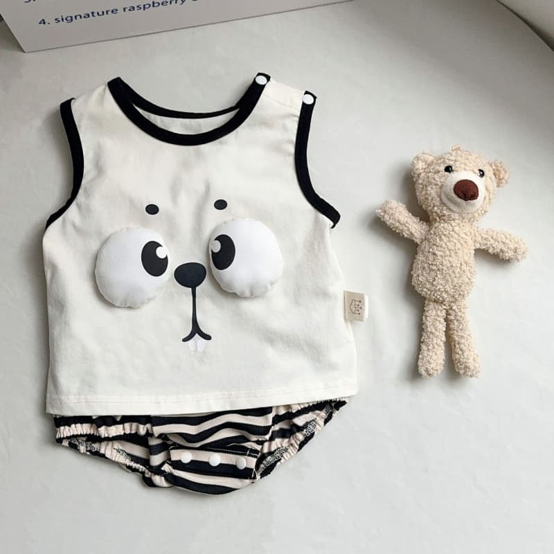 夏用韓国風ベビーストライプノースリップセット薄手A類外出用ショートパンツセット