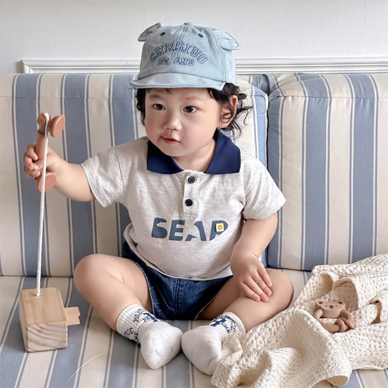 韓国風 夏用 薄手 1-3歳 ベビー ゆったりアルファベットTシャツ カジュアル 外出用セットアップ