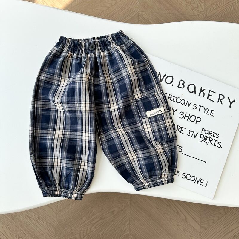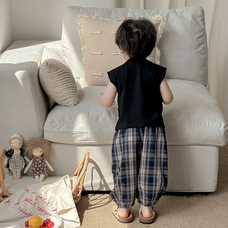 韓国風 夏用 ベビーベスト&チェックパンツ 2点セット 男の子用 おしゃれ外出着 薄手 クールスタイル