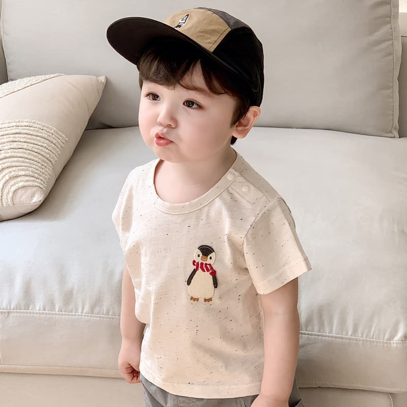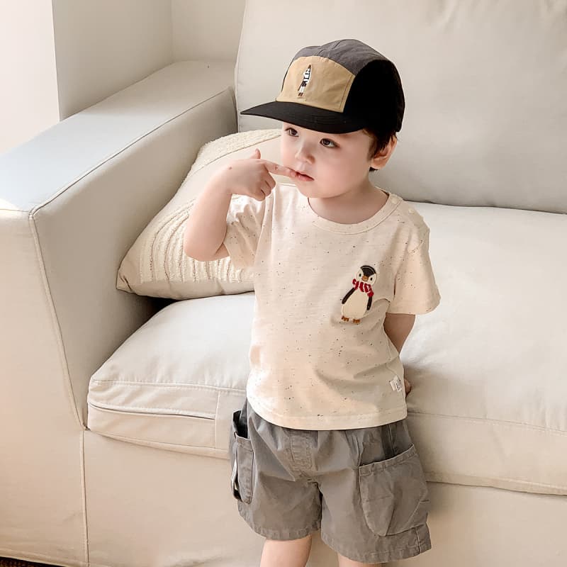 2025夏新作 男の子用 ペンギン柄半袖Tシャツ×カーゴショートパンツ セット(1-2歳用)